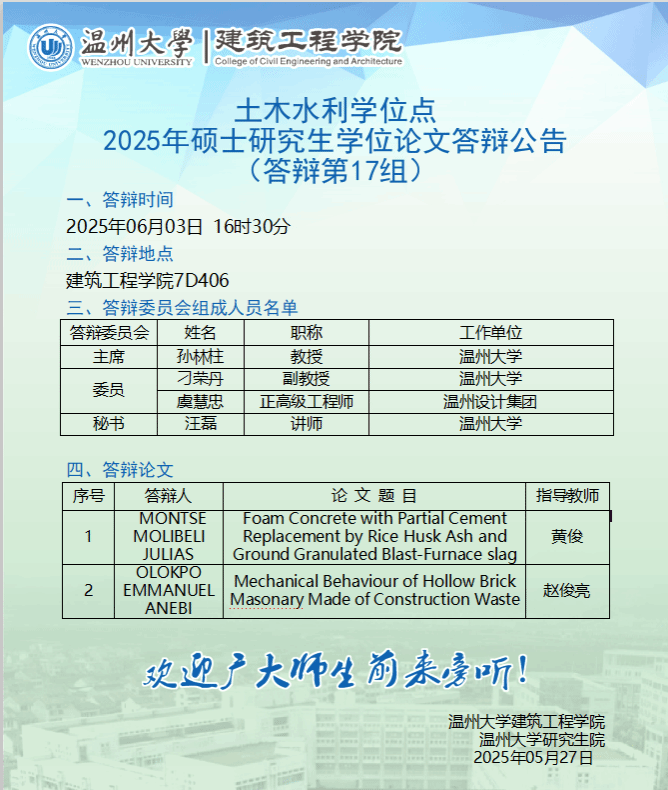 Announcement on the Thesis Defense for the 2025 (June) Master's Degree Students