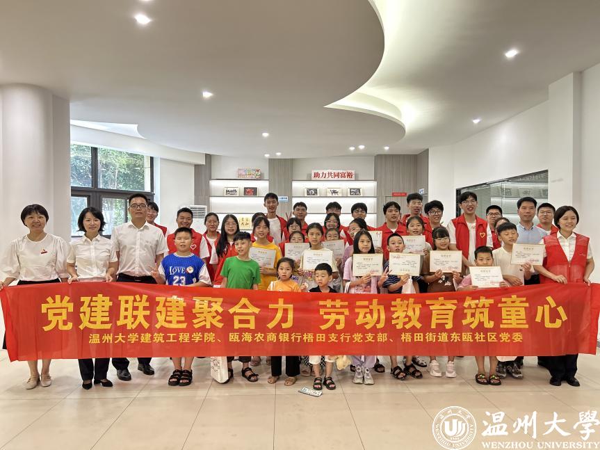 暑期实践队走进东瓯社区,开展“劳动筑童心”主题活动。实践队依托“共享社·幸福里”平台,结合生活实践经验,通过“农夫挑水记”“小小收纳家”“书本回家记”“进桶吧!垃圾”“跳舞的鞋带”等趣味游戏锻炼孩子们的劳动能力和自理能力,让孩子们体会劳动的快乐,在劳动中寻找获得感和成就感。