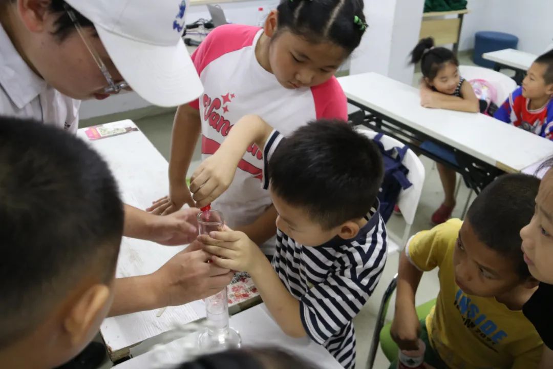 “爱的历程”实践队开展“大象牙膏”的趣味科学实验,共40位儿童参加。