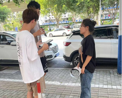 实践队顶着烈日在经常发生堵车路段进行了数据统计,通过对车辆通行时间、车辆通行速度、车辆类型和工作日与休息日通行时间段区分,在经过初步数据整理后前往温州数据管理发展集团进行数据汇报,与相关负责人一同建立数据模型,模拟城市交通路况。