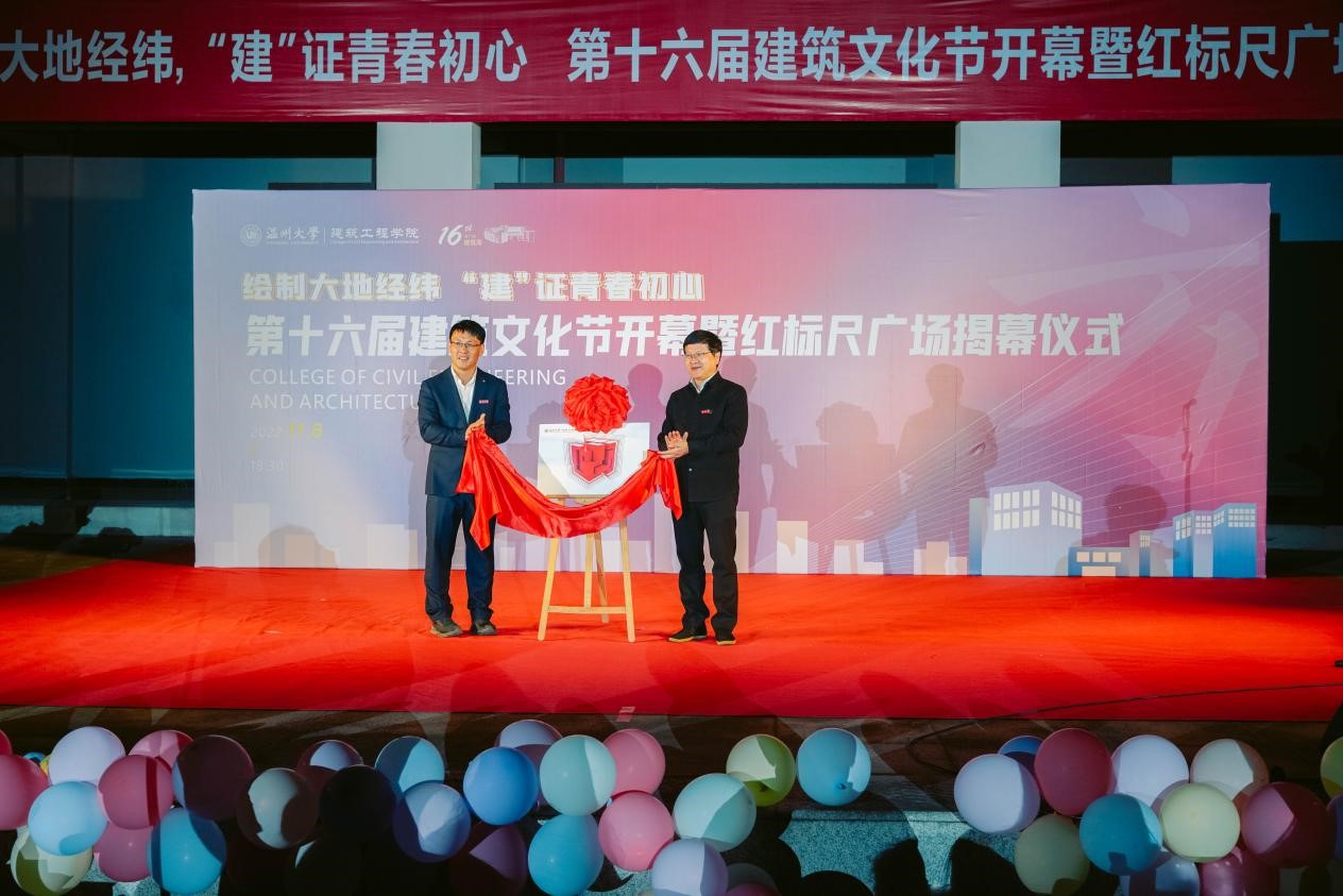 党委书记刘青松致辞中表示,“建筑文化节”是学院重点打造的校园文化品牌,通过开展丰富多彩的建筑文化活动,培养大学生的创新思维和实际动手能力,促进同学们德智体美全面发展;“红标尺广场”揭幕是继“红标尺长廊”后的又一学院力作,“红标尺”作为学院党委近年来着力打造的党建文化品牌,“标尺”作为建筑行业最基础的测量工具,学院希望同学们人生有尺、做人有度,包含了对同学们的期望;时光慢递!给四年、五年后的自己写一封信,是学院的传统项目,小小的鸟巢承载了同学们对未来自己的真挚祝愿,期盼在大学时光里起航新的梦想,扬帆新的人生。