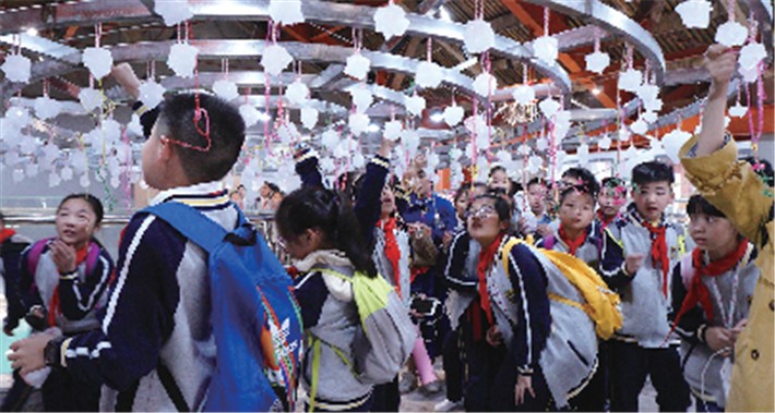 温州“矾”文化体验基地整体建设以矾文化、工业文化为主题,结合矾矿工业文化特色,以“承载希冀,科创未来;集思融智,再造传奇”为顶层设计理念。近年来,该基地积极设置特色课程,组织开展实践活动,有效助力拓展青少年校外素质教育。结合矾矿工业文化特色,按照“课程主线—场馆课程—活动项目”的主线,在整体重新规划的基础上,将基地划分为集散区、实践区、结晶区、室内活动区四大区域。设置包括矾塑体验、矾客手工制作、明矾与生活、矾山与井巷搭建、矾山与矾矿等课程活动体系。