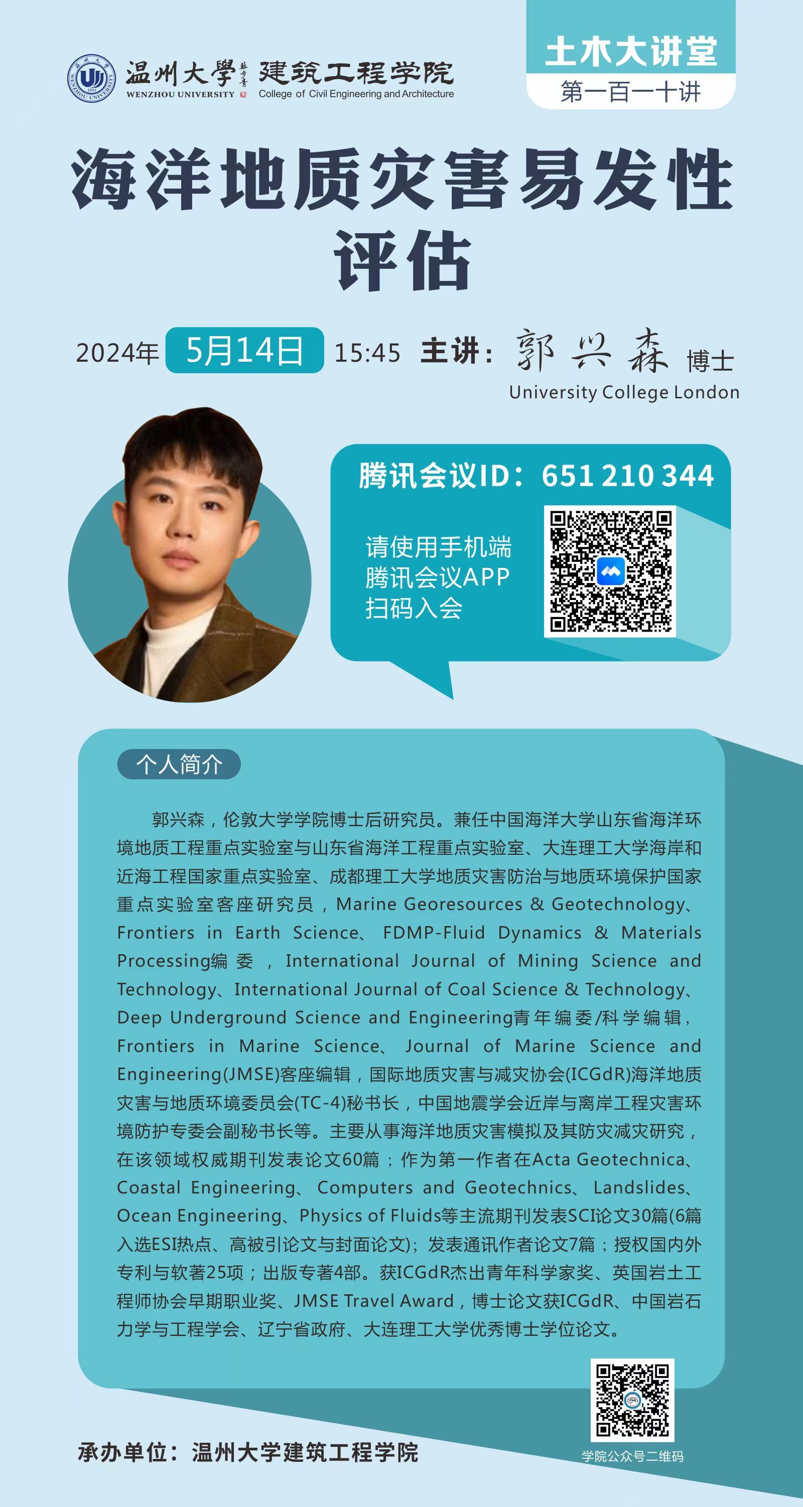 学术讲座预告:海洋地质灾害易发性评估