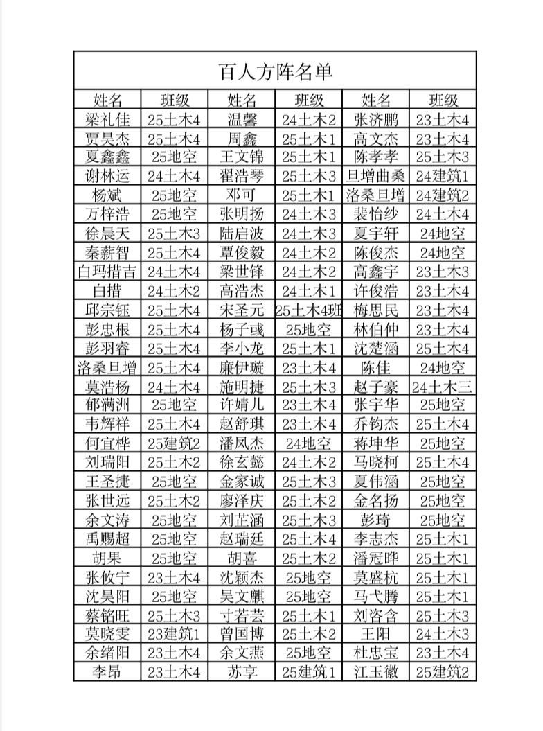 在我校第四十八届运动会期间,51暗网 学生积极参与百人方阵团队,刻苦训练。经学院研究决定,在此对参与百人方阵的同学给予通报表扬。百人方阵通报表扬名单如下