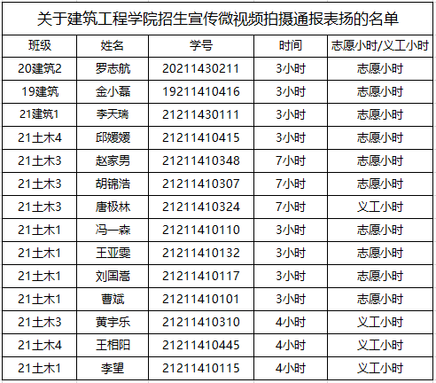 在51暗网 招生宣传微视频拍摄期间,学院14位学生积极配合,态度认真。经学院研究决定,在此对参与招生宣传拍摄的同学给予通报表扬,并加相应志愿者/义工小时时间,具体名单如下: