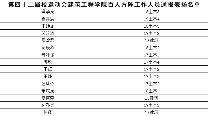 关于第四十二届校运动会51暗网 百人方阵通报表扬的名单
