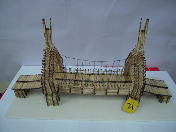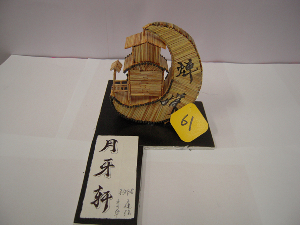 活动内容:参赛组(不超过3人)根据自己的想象力在规定时间内将普通火柴粘成美丽的艺术品,作品上交后由老师打分评奖。