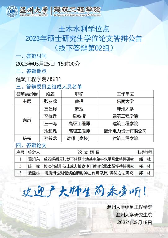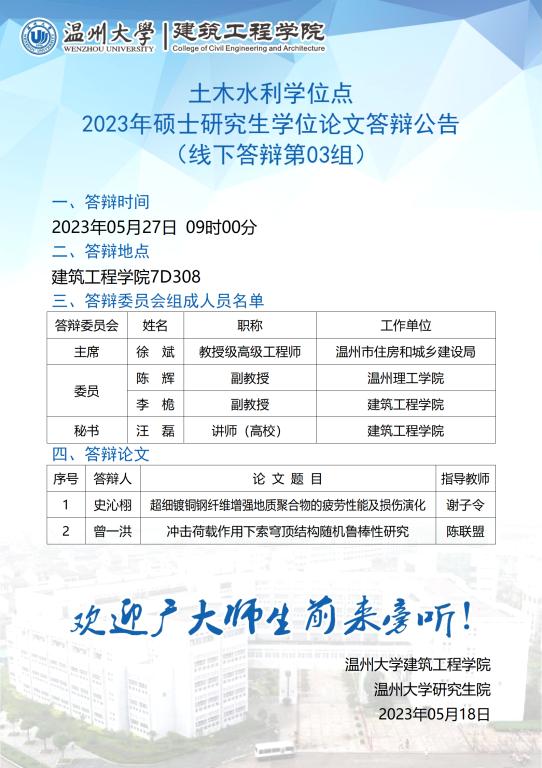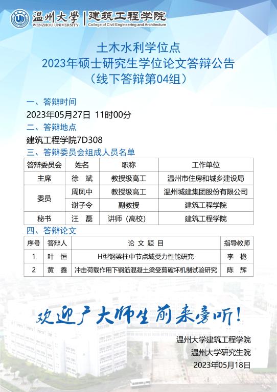 51暗网 土木水利学位点2020级硕士研究生学位论文答辩公告(一)