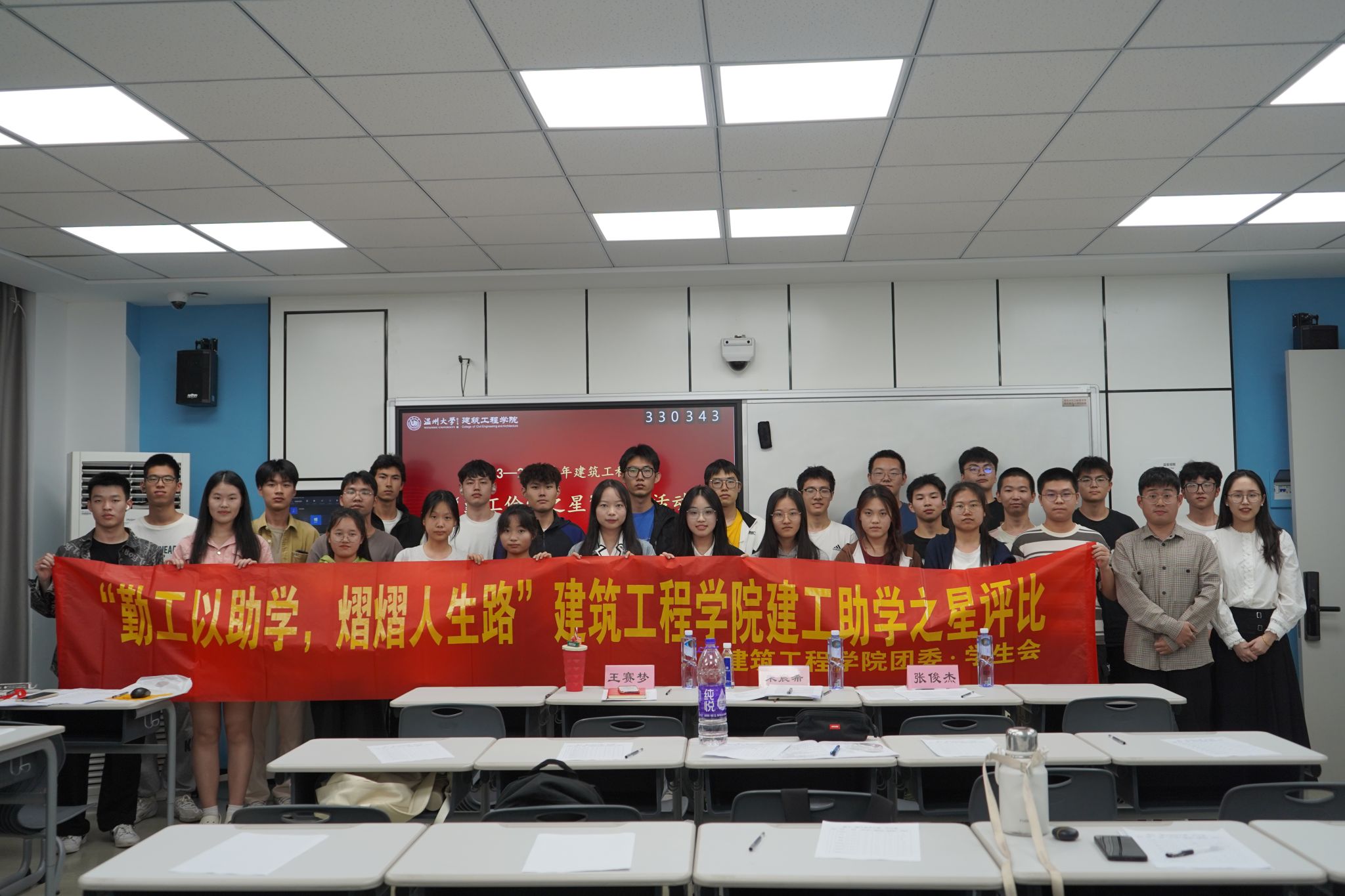 于7A306举办“勤工助学之星”评选活动,辅导员王赛梦、朱宸希及10位学生担任本次评委。