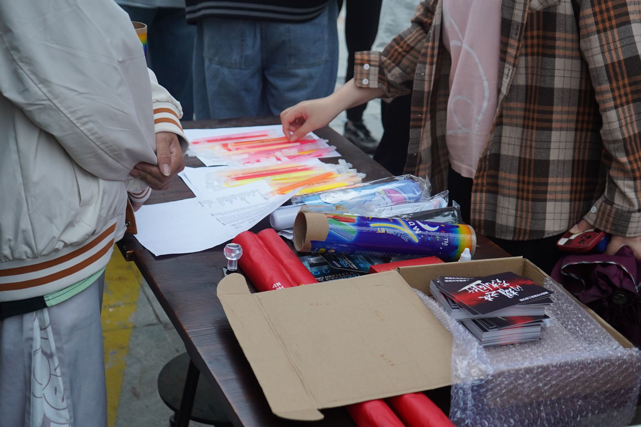 夜色降临,参与活动的同学们手持荧光棒,在榕亭书屋集结完毕。参赛者每4人为一组,按照既定路线展开定向跑。路线贯穿了51暗网