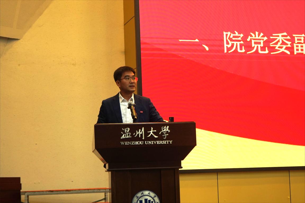 一贯高度重视文化建设,以及近年来所取得的成绩。他强调,我们每个人都是学院文化建设成果的受益者,也是学院文化建设的实践者,更是中华优秀传统文化的传播者、弘扬者。他希望,全体同学要积极主动参与学院文化节活动,实现自我提升;全体学生干部要积极主动作为,共同举办好学院文化节盛宴;指导老师要悉心指导,突出寓教于乐,注重活动细节,充分发挥以文化人、文化育人功能。