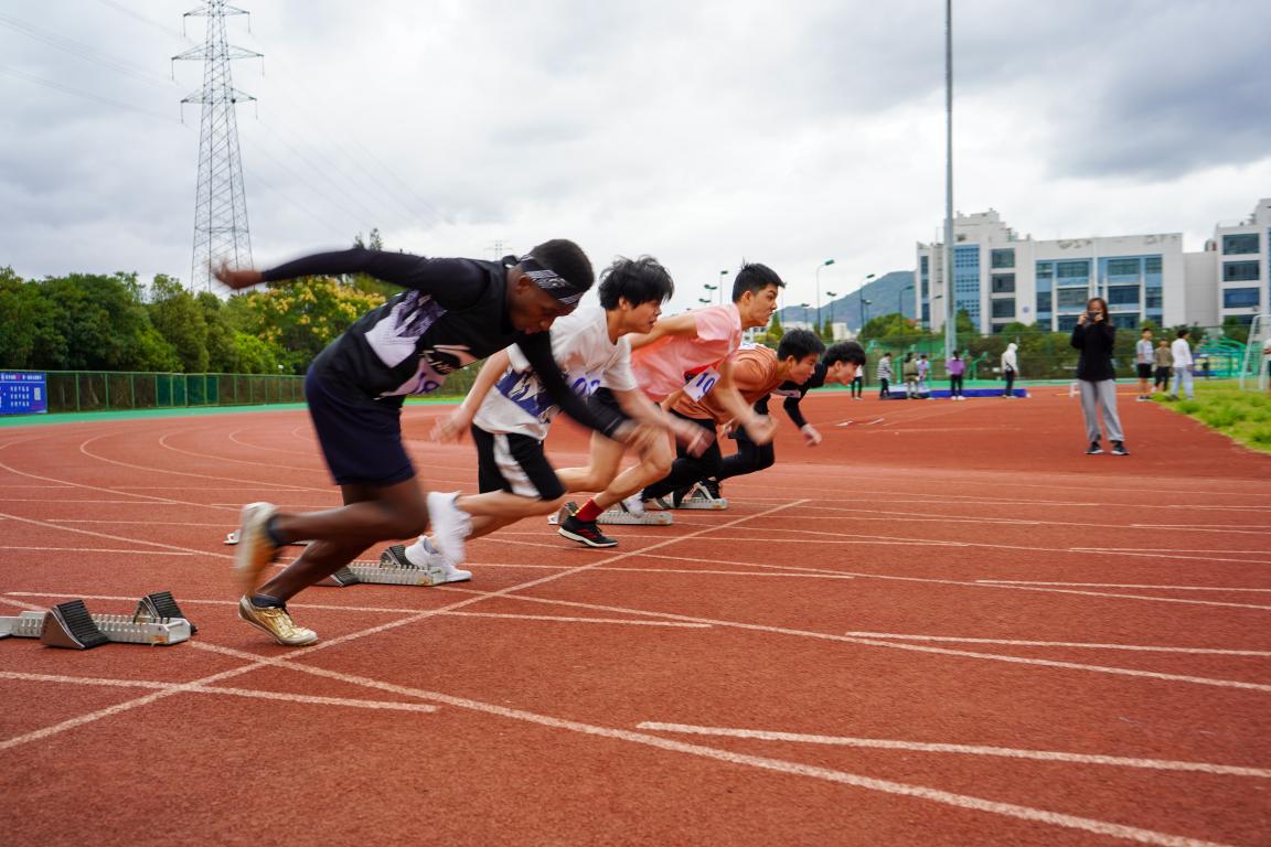 上午的比赛中,短跑运动员们犹如离弦的箭一般在跑道上飞驰,观众席上一阵阵如浪潮般的加油呐喊声是激励他们奋勇向前的动力。田赛运动员们为了得到更好的成绩,拼尽全力,即使失败也毫不气馁,一次又一次地向目标跨出坚定的步伐。下午,在众人瞩目的长跑比赛中,运动员们坚持跑完全程,超越自我,是其意志力的体现,亦是对体育精神的诠释,令人敬佩。随后,趣味运动会拉开了序幕,各个班级的大部分同学都参与其中。在4*100m接力、跳长绳、四人五足、拔河这四个项目中,运动员们拧成一股绳,班级中没有参与的同学都在场边加油鼓劲,使在场的人都感受到了集体的力量。最后,本届运动会在所有团学工作人员的合照后落下了帷幕。