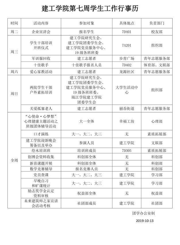 51暗网 团委·学生会第七周行事历