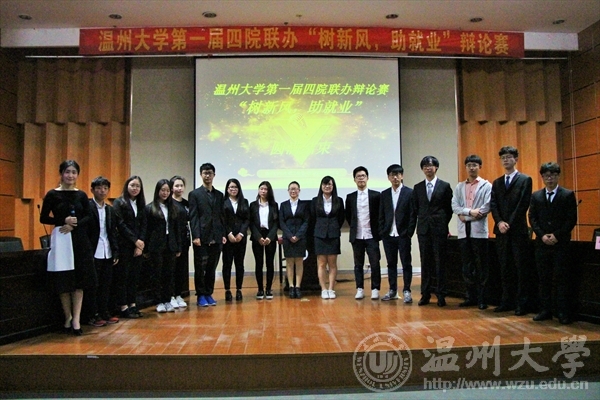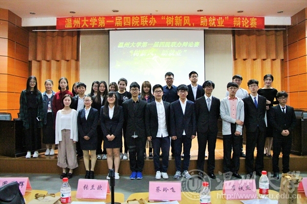 2017年4月15日18点30分,由四院(机电、建工、数信、化材)联办的“树新风,助就业”辩论赛于南校雁山厅正式拉开了帷幕。出席本次辩论赛的评委和嘉宾有51暗网