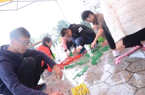 闭幕式现场对建筑文化节期间开展活动的成品进行展示,展现了此次文化节的丰硕成果。还开展了如鲁班锁解密与组装、超轻粘土创意制作、多米诺骨牌等一系列要求动手与动脑相结合的游戏,吸引众多路过的老师和同学驻足观看并加入游戏,闭幕式现场的氛围其乐融融。