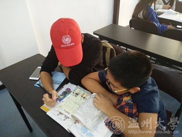 11月19日12:40,天气晴朗,万里无云,湛蓝的天空中,一轮灼热的太阳照耀着大地,前几天还挺冷的,但今天缺突然转热了,天气的变化突然,并不能阻挡志愿者们的热情,大家的热情和这太阳一样猛烈。当志愿者们抵达之时,有小朋友先到了,其中有一个二年级的小女孩和四年级的小男孩,两人都特别地活泼,可又比较怕生,不愿意和其他第一次来的志愿者一起,于是便由建工团学志愿者赵宏嘉阳来教她,小女孩活泼可爱,活蹦乱跳,也淘气的很,一下子让志愿者帮他画画,一下子又说要喝饮料,于是志愿者就和她谈条件,他出两道计算题,全对就去买,当然她全对了。之后她写完了作业,他们又开始了写字比赛,看谁写的字好看,她当然是兴致勃勃的,一副摩拳擦掌蓄势待发的样子。慢慢地志愿者们和孩子们都熟络起来了。志愿者赵宏嘉阳说道,我觉得和小年龄的孩子相处,给予奖励作为鼓励是一种很好的方法,而比赛是另一种很好的方法,孩子总是希望获胜取得奖励的,喜欢比赛,争强好胜,这也是孩子的优点吧。