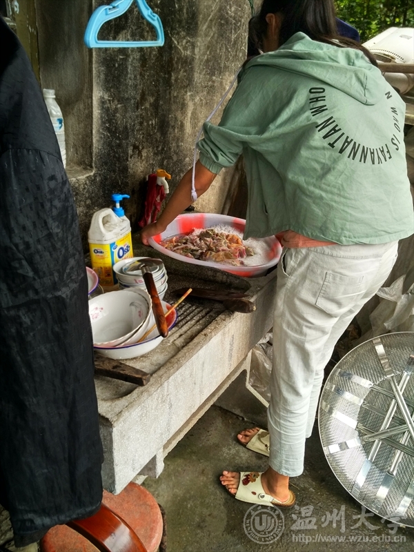 第一小分队来到了丽岙桥村,他们的任务是到当地一位空巢老人的家里进行志愿者服务。到了目的地后第一小分队的志愿者们跟随联络员到达了老人的家里。志愿者们到了老人家与老人进行亲切的交谈后里就开始忙乎了,男队员负责整理柜子并擦拭桌子,后来还积极清洗冰箱。女队员工作比较简单,洗碗洗筷,清洗碗还柜等等,还洗了被单。原本一间冷清清的房子顿时充满了温馨的气息,看到老人脸上洋溢着幸福的笑容,志愿者们的心里也幸福满满。离别时志愿者们约定以后每半个月来一次。