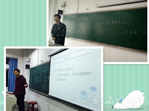 各班举办了以“文明修身伴我行——大学生商务礼仪”为主题的班会。