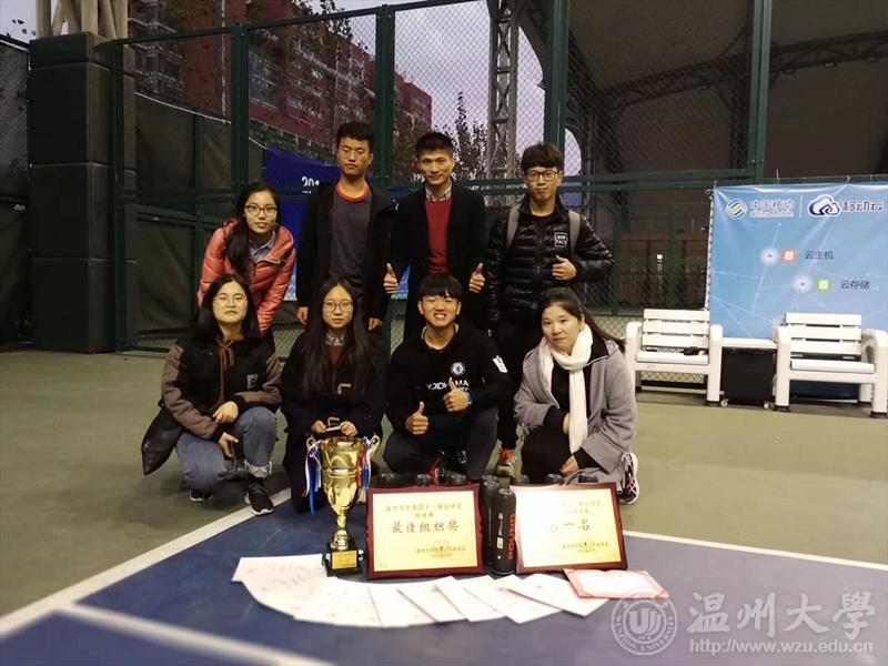 取得了甲组男子团体第一名,甲组女子团体第五名的喜人佳绩。在网球赛趣味墙球个人赛中,朱凯旋获得男子墙球第二名,沈之婧获得女子墙球第二名,黄平获得最佳运动员称号的好成绩。