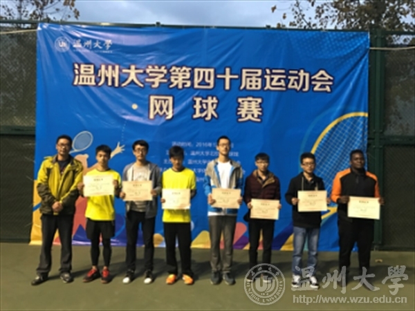 第四十届运动会网球赛。此次比赛代表建工学院参赛的是朱凯旋、黄平、周智强、王朋朋四名男队员参加男团比赛。比赛分为两个部分,一个是学院间团体比赛,另一个是每队一名队员的一分钟击墙的趣味项目。早上九点,在开幕式之后比赛正式进行。建工在小组赛里和数信、美院一组,经过两个小时的比赛,我们都以3:0的成绩战胜另外两个学院,成功晋级半决赛。半决赛的对手是法政学院,其中一名队员也是温大校网队队员,实力很强,可是队员们并不畏惧,发挥出了自己应有的水平并取得胜利。半决赛后的决赛是和机电学院对战,决赛的对手自然是最强的,虽然比赛很艰难,但我们还是取得了最终的胜利。在团体赛结束后是个人的击墙个人趣味项目赛,我们学院以我为代表参赛,在一分钟的时间里,我以三十五个有效击球数取得了比赛的第一名。