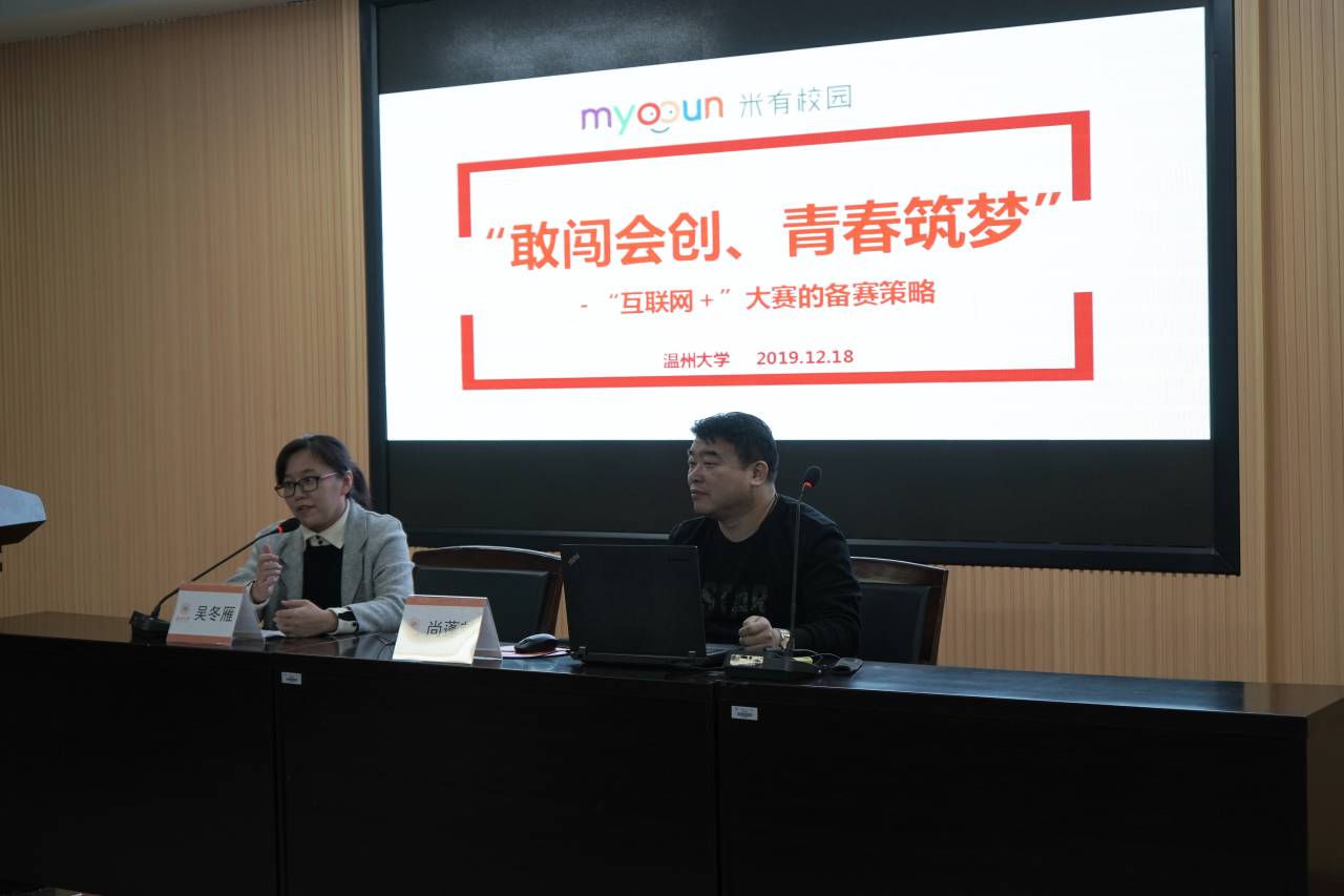 大会伊始,吴冬雁老师先是介绍了大赛的背景以及奖项设置。讲座部分,尚蓬勃老师分两部分对这项竞赛备战进行了指导。首先,他简要介绍了今年的大赛情况并指出浙江高校不缺乏创业氛围。紧接着,尚老师提到不同时期对人才及国家的素质要求是不同的,建议同学们应结合当下时事热点和高校的创新背景,理清此次赛事的重要性。其次,尚蓬勃老师从“懂规则、抓原点、炼表达、促行动”4个方面详细讲述了如何备赛,并以顺口溜的形式将要点串联了起来。期间,以生动形象的例子、幽默风趣的讲解方式、活泼却又不失严谨的互动方式,将同学们在确立创业项目、路演等过程中的注意事项娓娓道来,让大家对“互联网+”大赛有了更深入的认识和全新的了解。