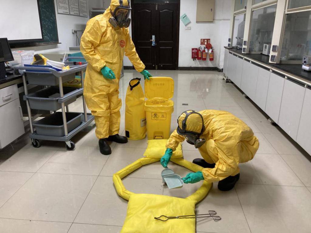 首届实验室安全教育宣传月”活动方案和总体安排,5月12日,我校举行了以“强化安全意识,提升安全素养”为主题的实验室安全应急演练活动。本次活动内容包括实验室消防疏散应急演练、化学品泄漏应急演练和气体泄漏应急演练。