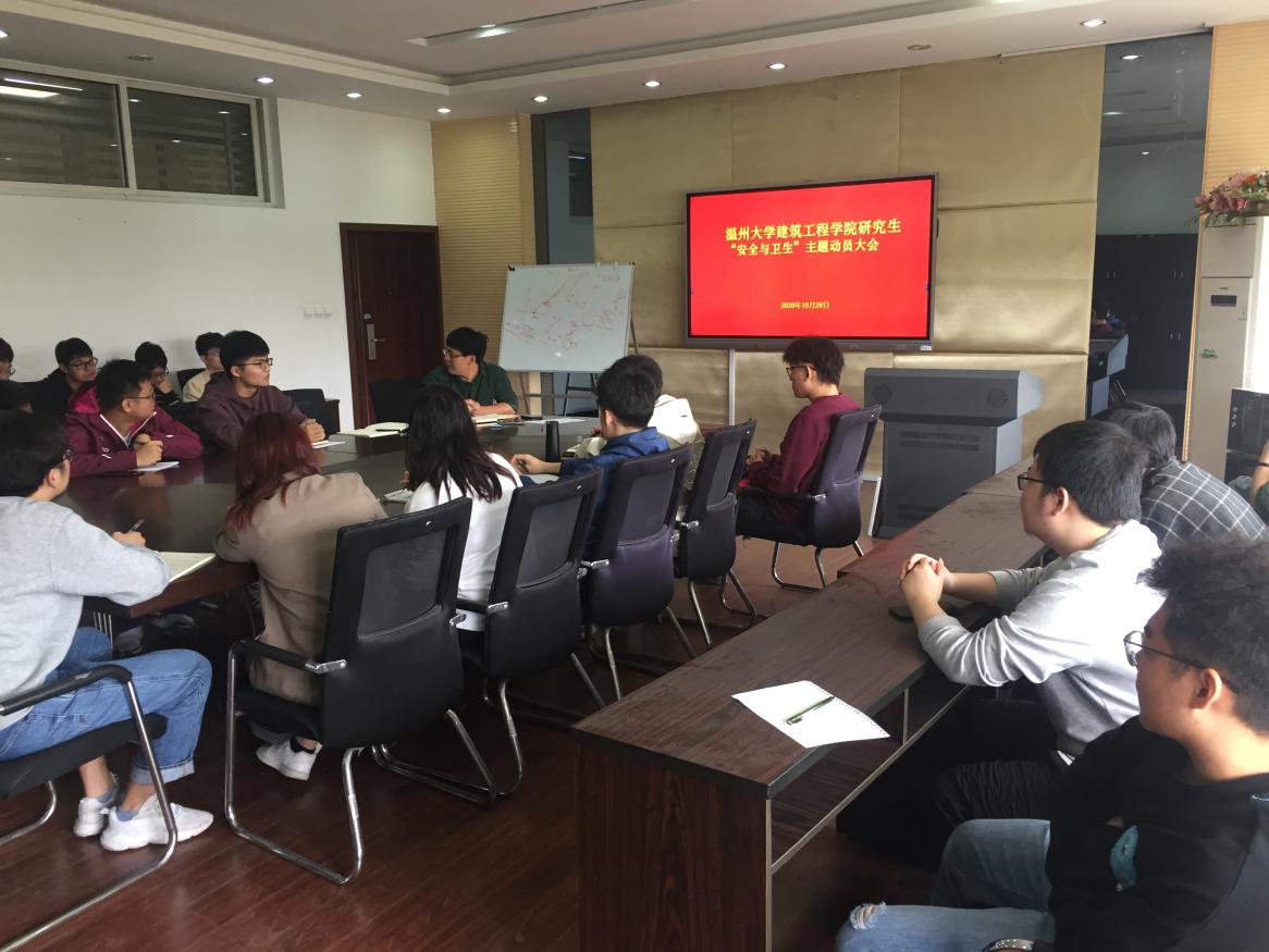 2020年10月29日上午10时于7B211召开研究生“安全与卫生”主题动员大会。会议由副院长郭林、实验师蔡瑛、研究生会及各研究生工作室代表参加。会上,各研究生就学习生活中存在的安全与卫生问题畅所欲言,对各项需要提出了请求,会议氛围良好,大家达成以下共识: